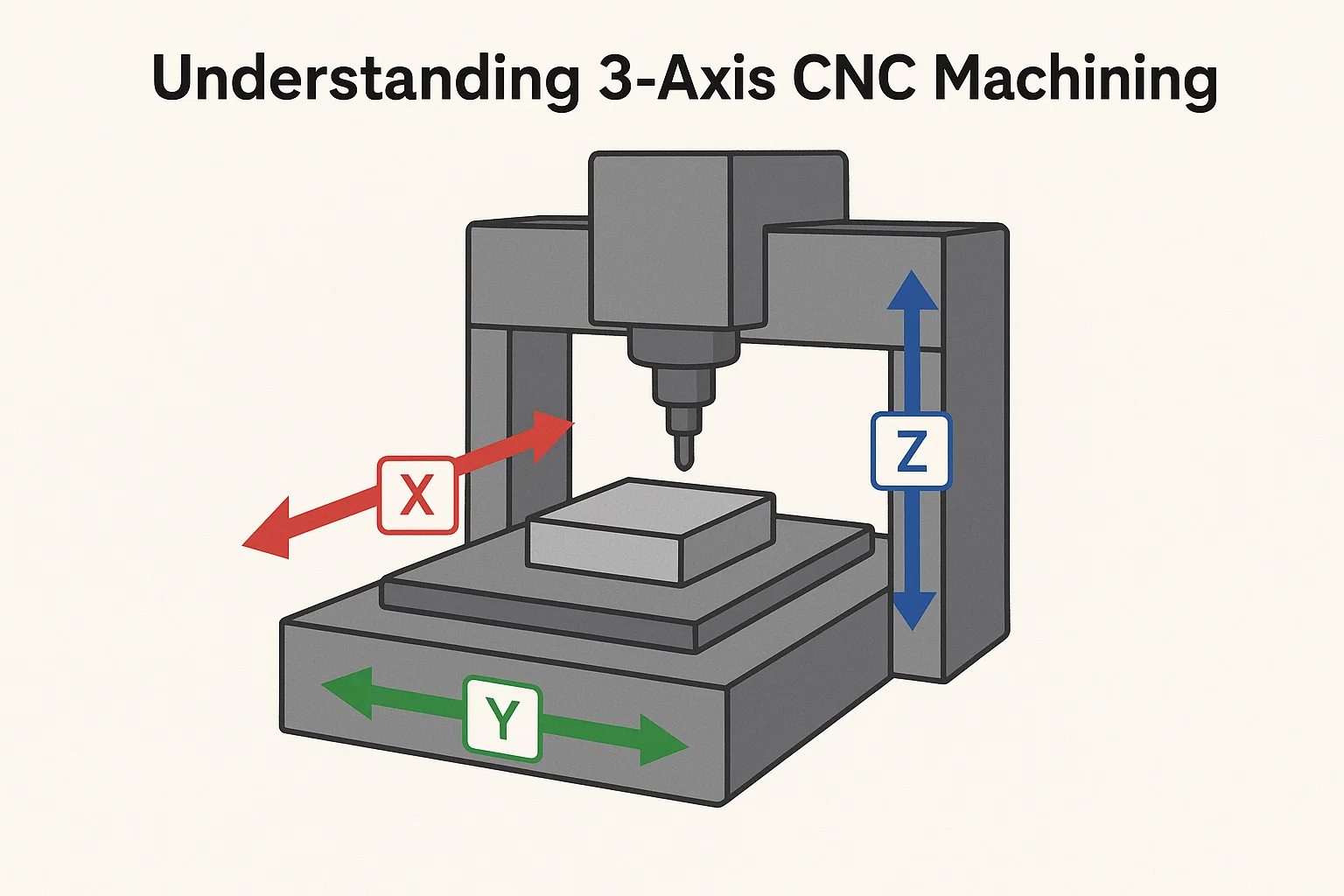 Di tengah-tengah pemesinan pelbagai paksi terletak konsep asas pergerakan di sepanjang paksi yang berbeza. Jenis yang paling biasa dan asas adalah Pemesinan CNC 3-paksi , yang beroperasi di sepanjang tiga paksi linear utama: X, y, dan z .