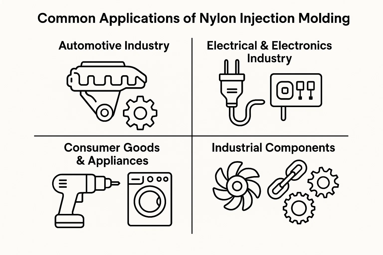Sektor automotif adalah salah satu pengguna terbesar suntikan nilon yang dibentuk, terutamanya gred bertetulang (PA6 dan PA66 yang penuh kaca), di mana prestasi dalam persekitaran panas adalah penting.