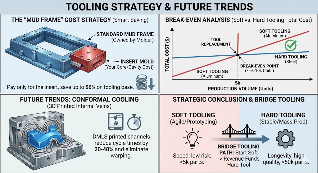 Sekiranya anda tidak pasti, tanya rakan pembuatan anda mengenai a "Alat Jambatan" strategi. Mulakan dengan alat aluminium kos rendah untuk mendapatkan pasaran dengan cepat. Gunakan pendapatan daripada 5,000 bahagian pertama untuk membiayai pembinaan acuan keluli P20 kekal. Ini memberi anda kelajuan perkakas lembut dengan panjang umur alat yang sukar.