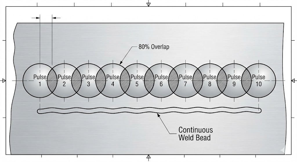 - Kimpalan Berterusan/Bertindih: Juruteknik bertindih setiap "titik" dengan 70-80% untuk mencipta manik logam yang lancar dan padat.