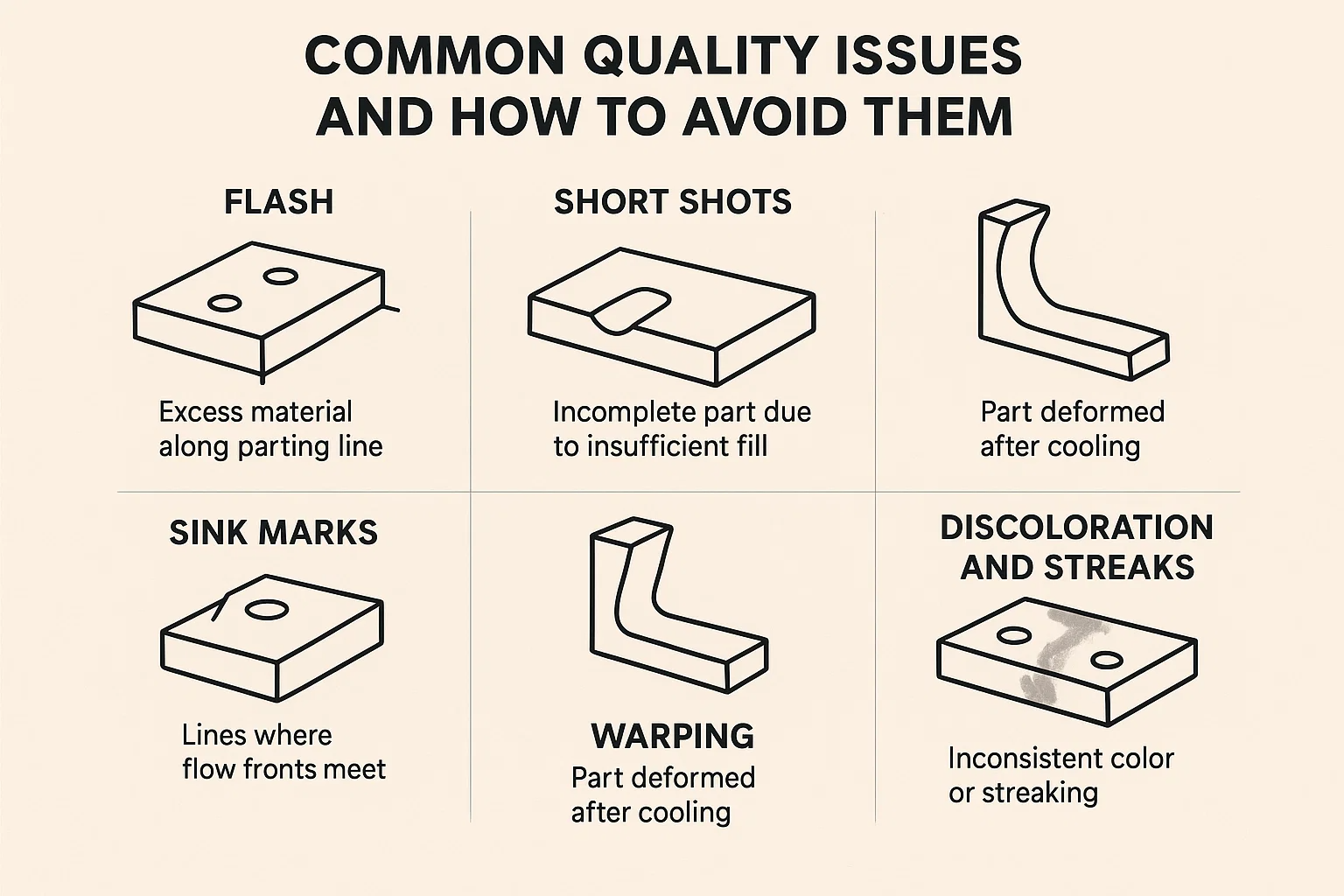 - Pertimbangkan bahagian diri atau bahagian sejagat: Merancang bahagian -bahagian yang boleh digunakan secara bergantian (mis., Atas dan bawah yang sama) dapat mengurangkan bilangan acuan unik yang diperlukan.